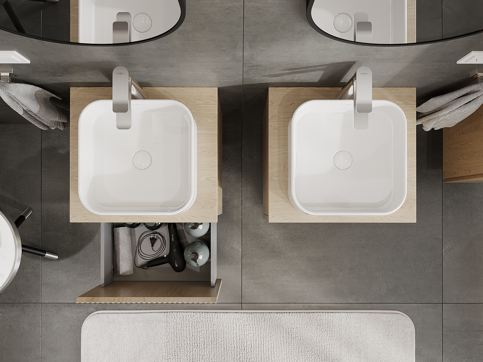 Mexen Rivel kopalniška omarica pod umivalnik 50 cm, 1 predal, žlebljena, hrast - 91A20-05047-1-BF81