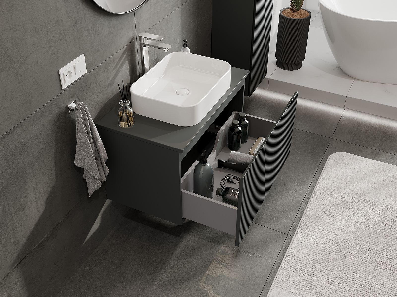 Naše modularno pohištvo za kopalnice je mogoče združevati v različnih barvnih konfiguracijah, kar omogoča popolno personalizacijo. Možno je izbrati tako videz kot funkcije posameznih elementov, kar omogoča prilagoditev pohištva vašim slogovnim in uporabniškim preferencam.
