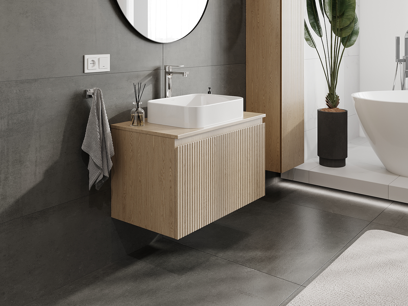 Zaradi trdnih materialov, natančne izdelave in sodobnih tehnoloških rešitev izdelek zagotavlja udobje uporabe, odpornost proti vlagi in spremembam temperature, pa tudi eleganten videz, ki se prilega različnim slogom kopalnic.