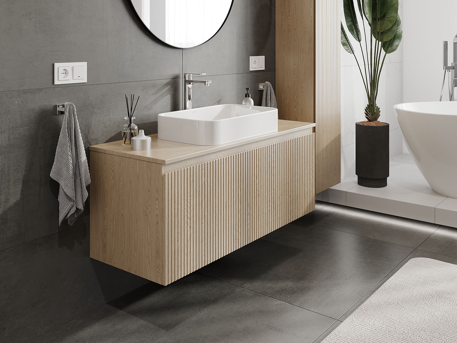 Zaradi trdnih materialov, natančne izdelave in sodobnih tehnoloških rešitev izdelek zagotavlja udobje uporabe, odpornost proti vlagi in spremembam temperature, pa tudi eleganten videz, ki se prilega različnim slogom kopalnic.