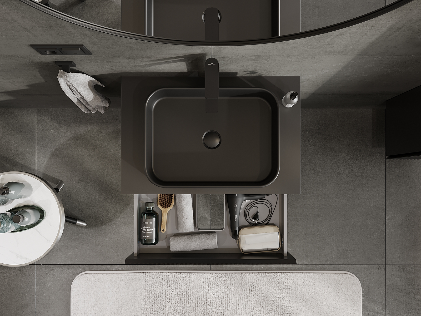 Ohišje omarice se dostavi v celoti sestavljeno, kar pomeni maksimalno udobje in prihranek časa. Ni vam treba izgubljati ur pri sestavljanju pohištva – samo namestite ga na izbrano mesto v kopalnici. To je idealna rešitev za tiste, ki cenijo hitro montažo in takojšen učinek.