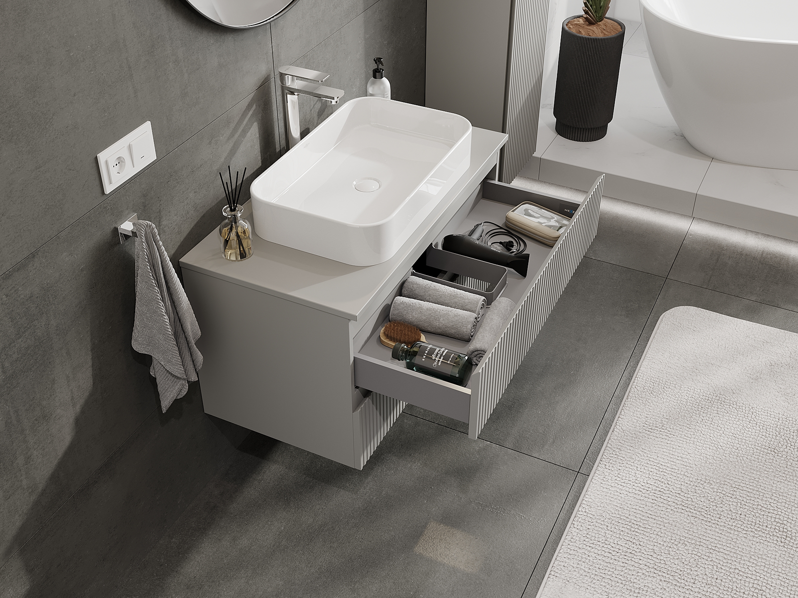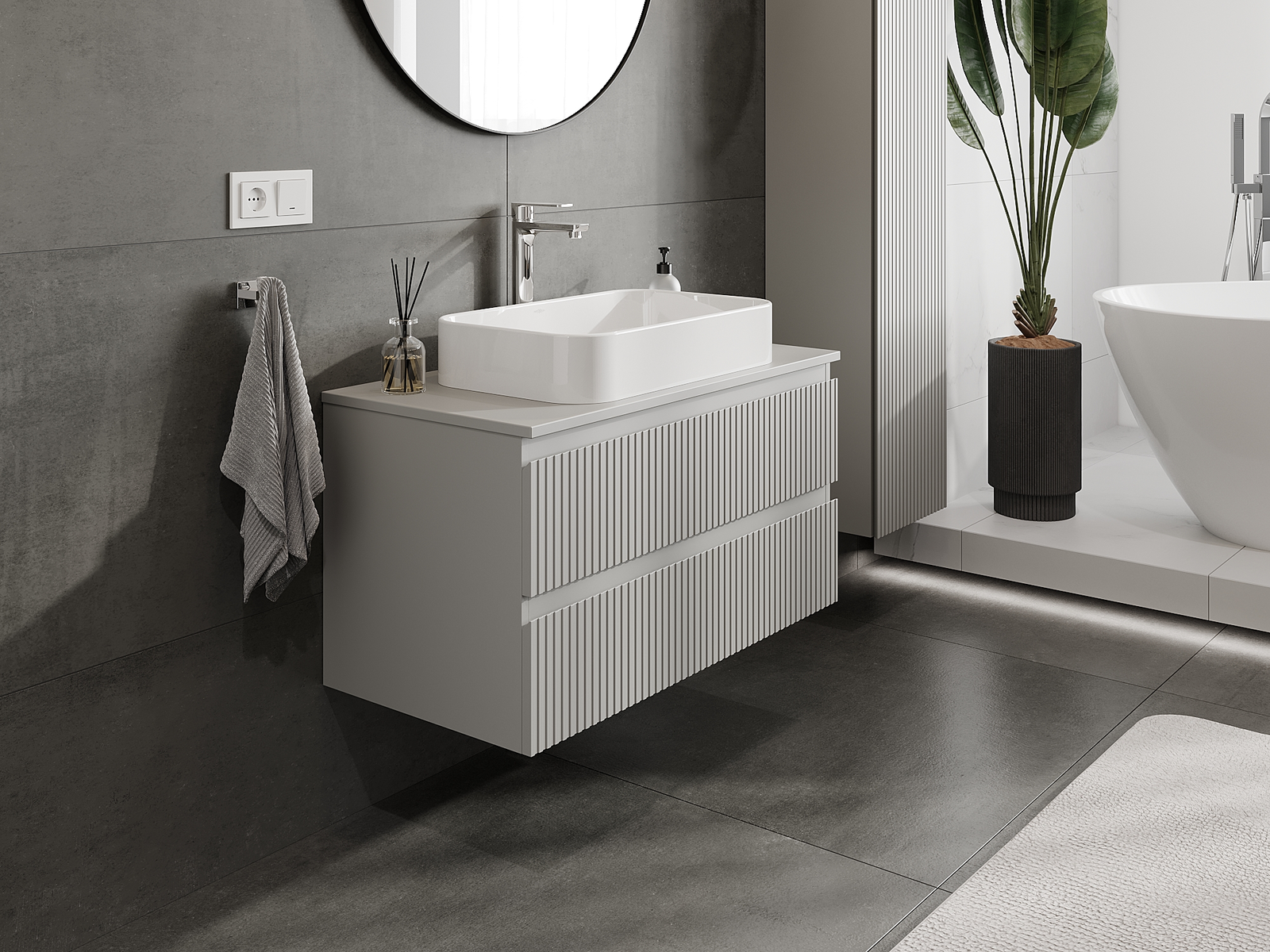 Naše modularno pohištvo za kopalnice je mogoče združevati v različnih barvnih konfiguracijah, kar omogoča popolno personalizacijo. Možno je izbrati tako videz kot funkcije posameznih elementov, kar omogoča prilagoditev pohištva vašim slogovnim in uporabniškim preferencam.