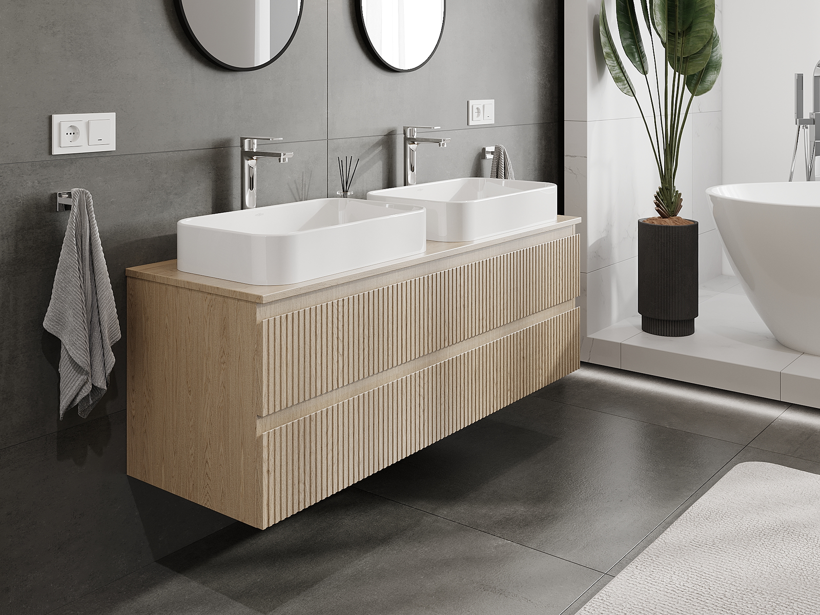 Mexen Rivel kopalna omara pod umivalnik 140 cm, 2 predala, rebrasta, hrast - 91A20-14047-2-BFF81