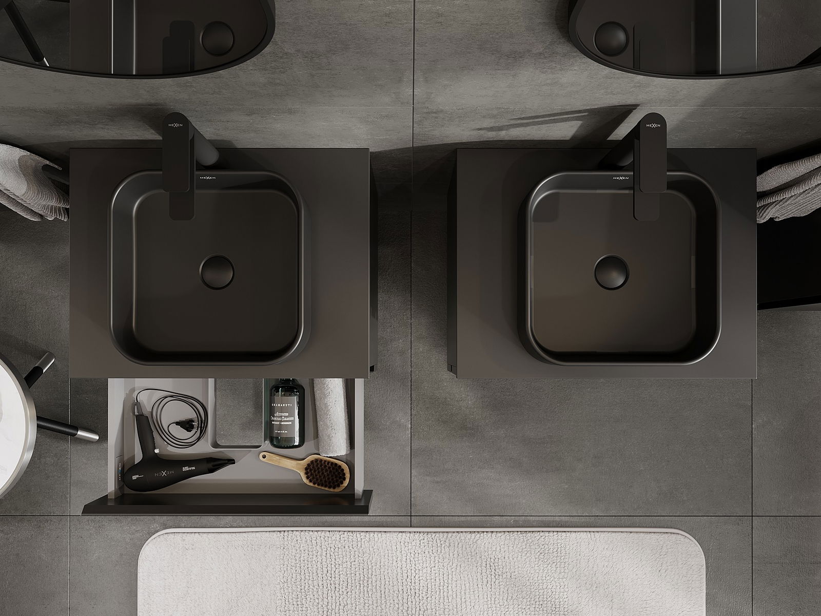 Mexen Orio kopalniška omarica s pultom 60 cm, 2 predala, črna mat - 91A10-06047-2-BFFC71