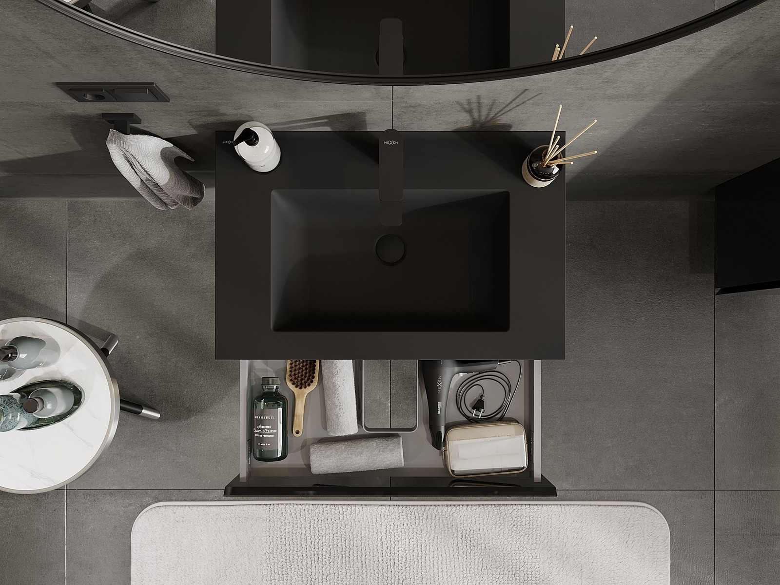 Mexen Orio kopalniška omarica 70 cm z umivalnikom Otis, 1 predal, črna sijaj/črna mat - 91A10-07023-1-BF70-W18M71