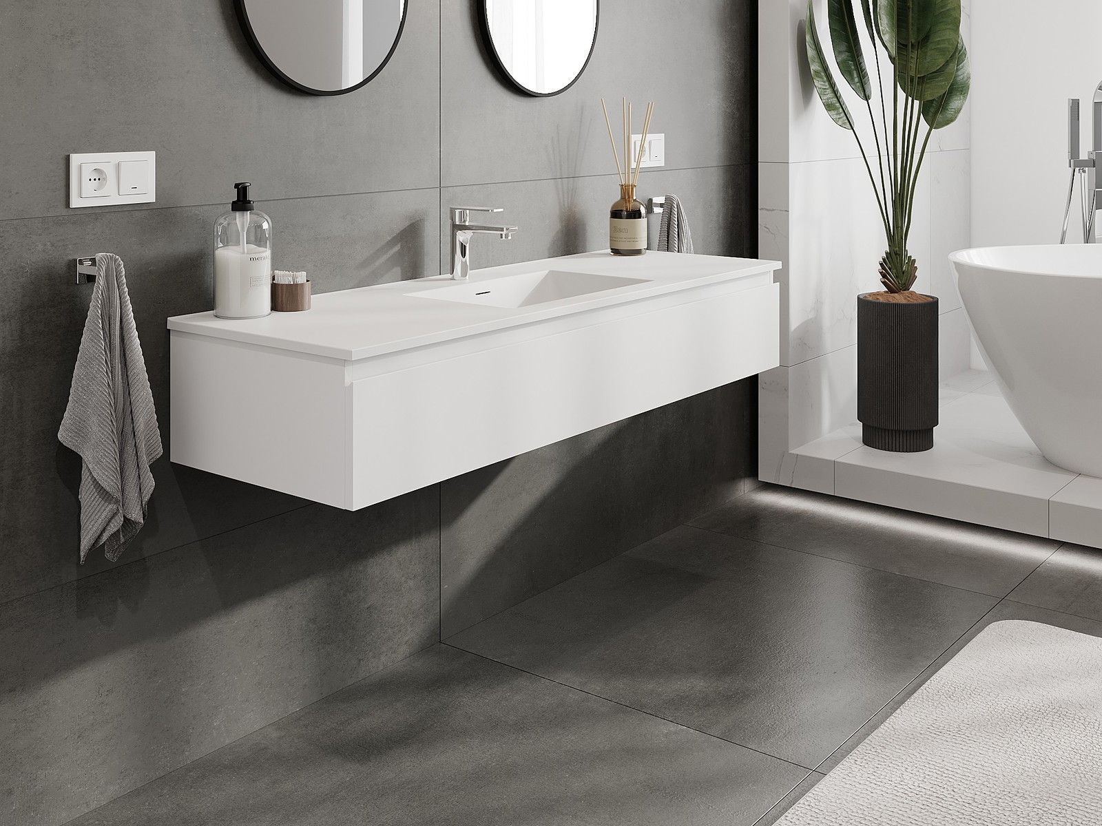 Zaradi trdnih materialov, natančne izdelave in sodobnih tehnoloških rešitev izdelek zagotavlja udobje uporabe, odpornost proti vlagi in spremembam temperature, pa tudi eleganten videz, ki se prilega različnim slogom kopalnic.