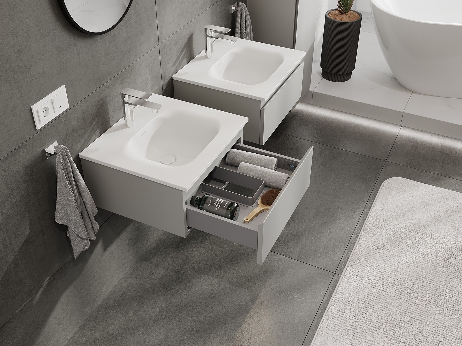 Mexen Orio kopalniška omarica 50 cm z umivalnikom Vela, 1 predal, siva mat/bela mat - 91A10-05023-1-BF62-W23M01