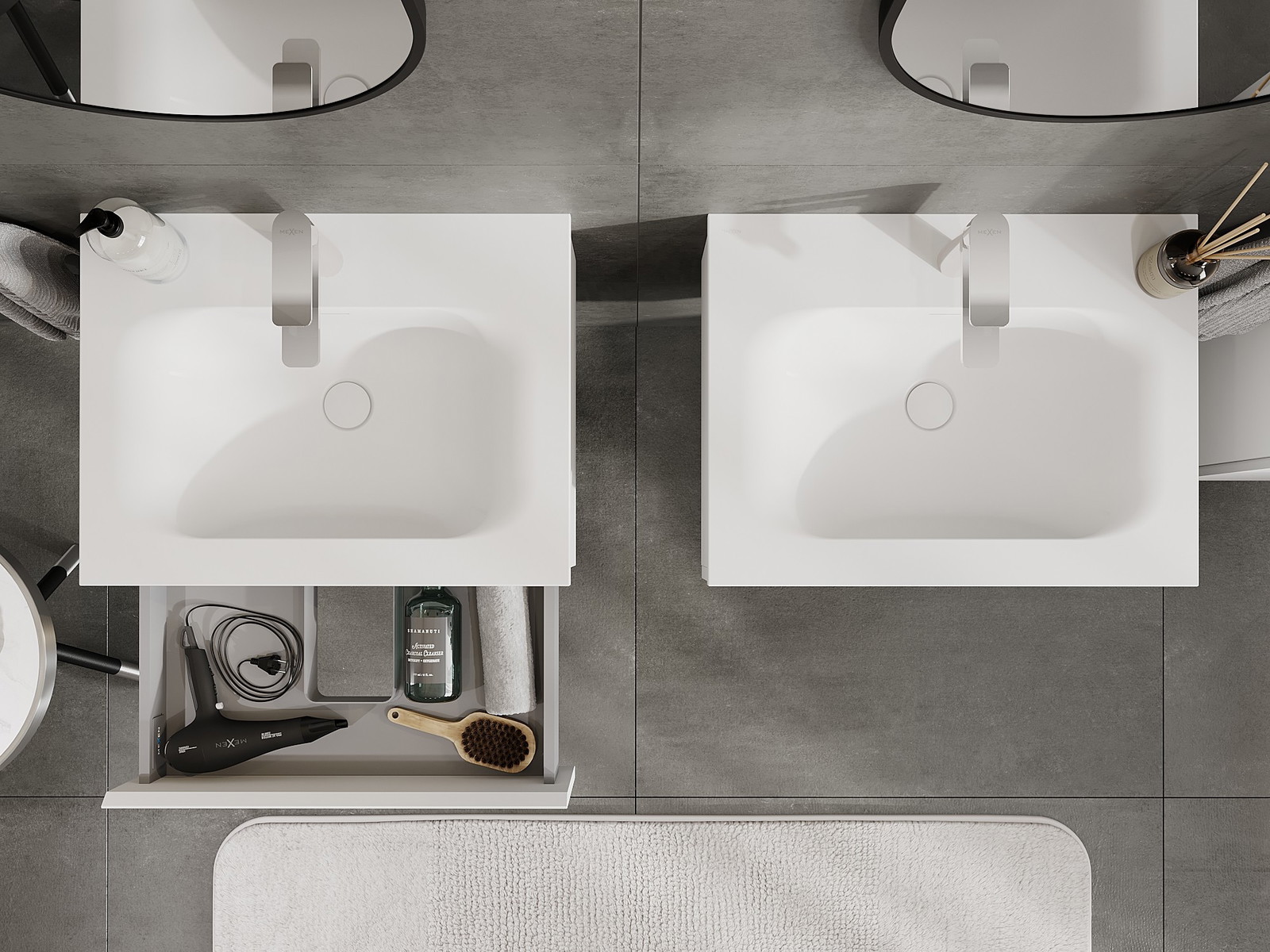 Mexen Orio kopalniška omarica 60 cm z umivalnikom Vela, 1 predal, mat bela - 91A10-06023-1-BF01-W23M01