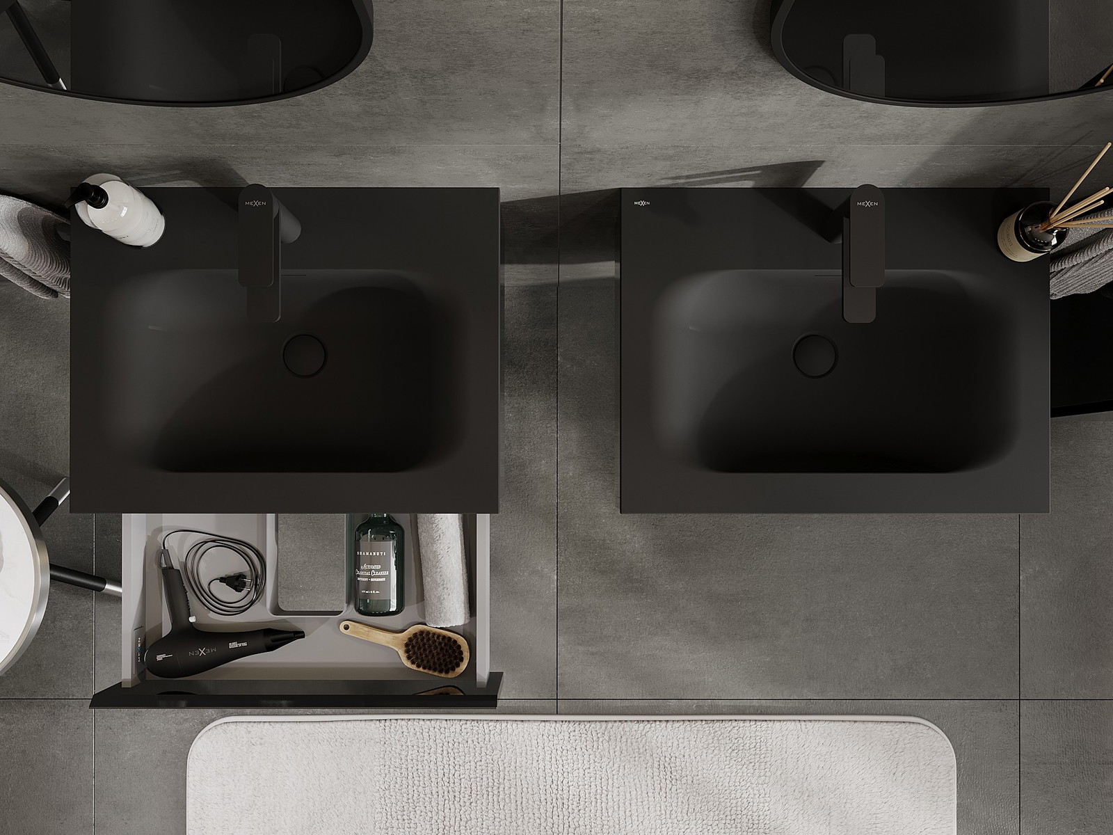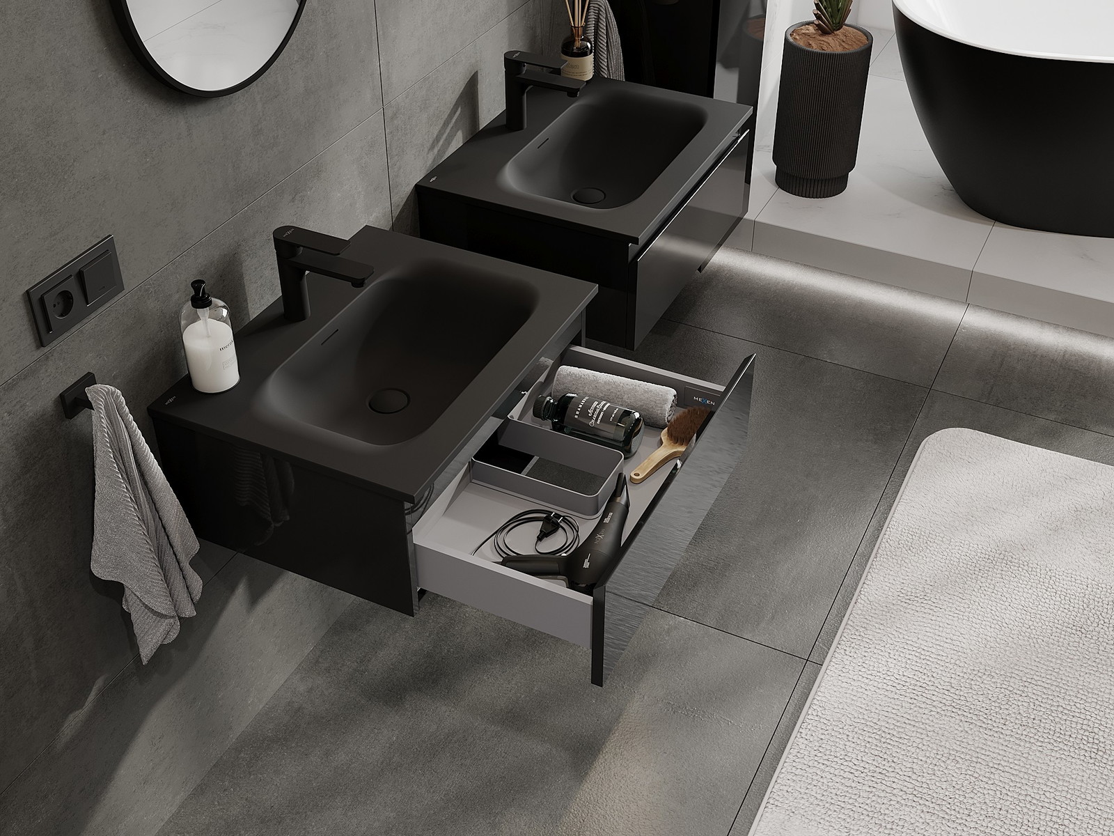 Mexen Orio kopalniška omarica 60 cm z umivalnikom Vela, 1 predal, črna sijaj/črna mat - 91A10-06023-1-BF70-W23M71