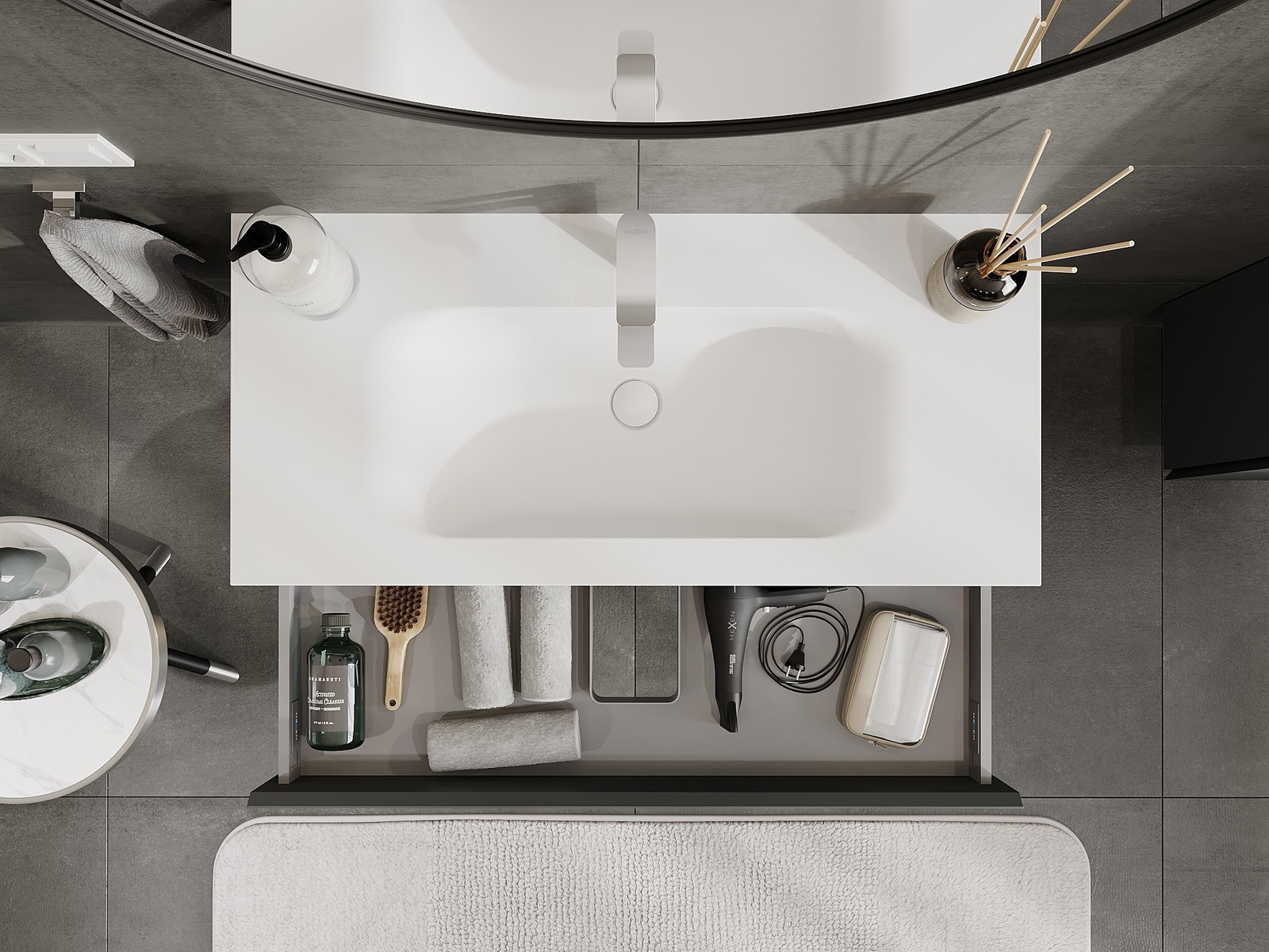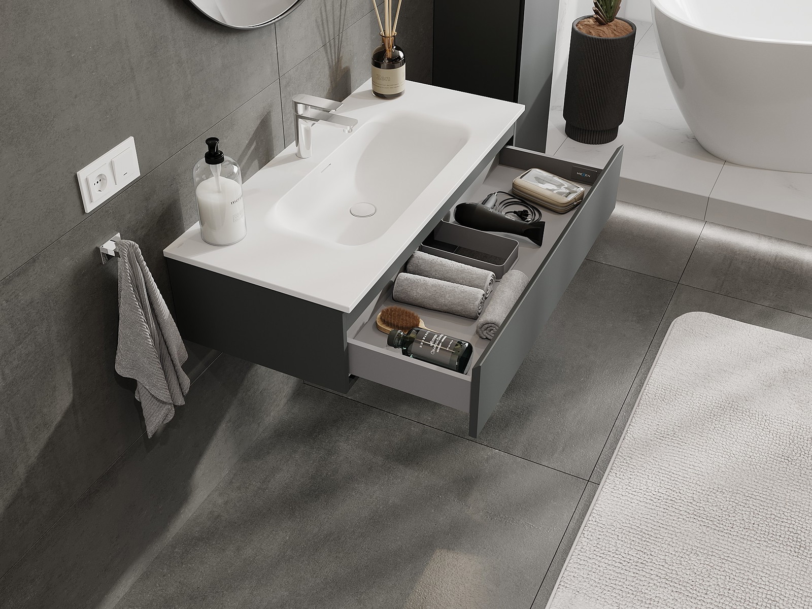 Mexen Orio kopalna omarica 100 cm z umivalnikom Vela, 1 predal, grafitna mat/bela mat - 91A10-10023-1-BF66-W23M01