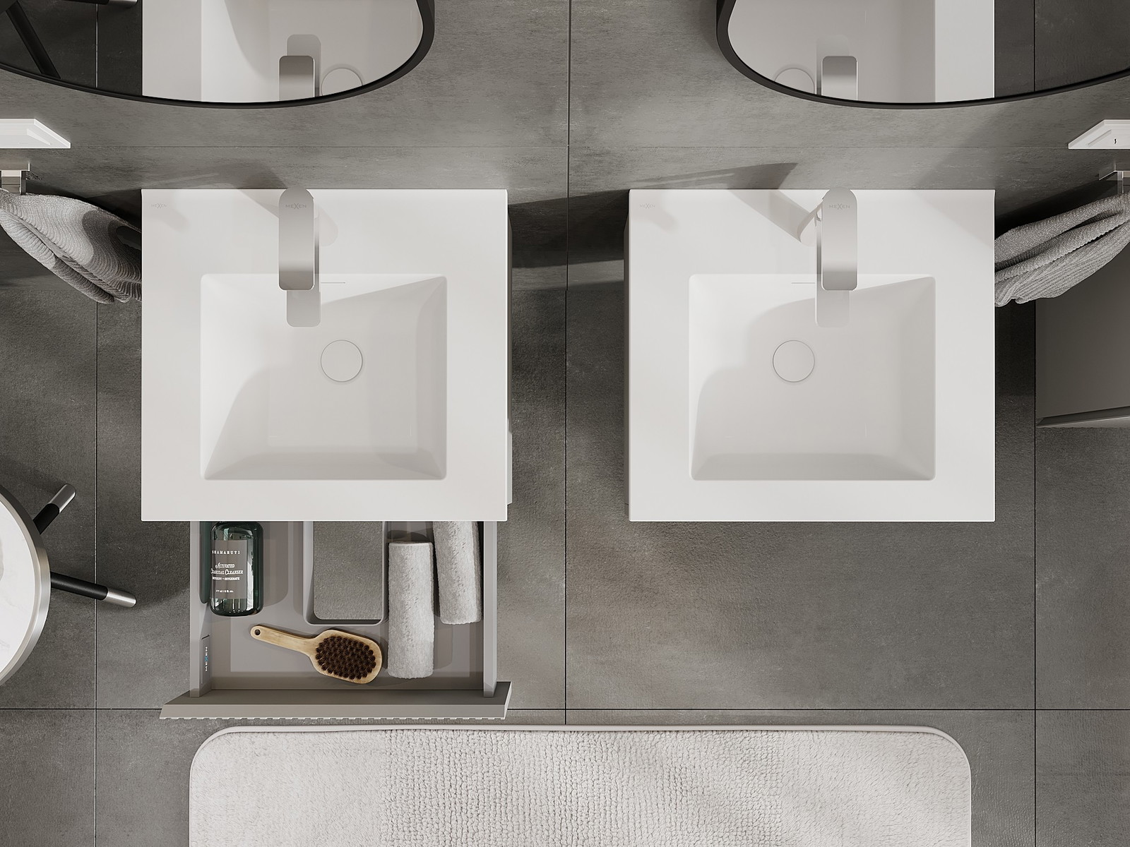 Mexen Rivel kopalniška omarica 50 cm z umivalnikom Otis, 1 predal, rebrast, siva mat/bela mat - 91A20-05023-1-BF62-W18M01