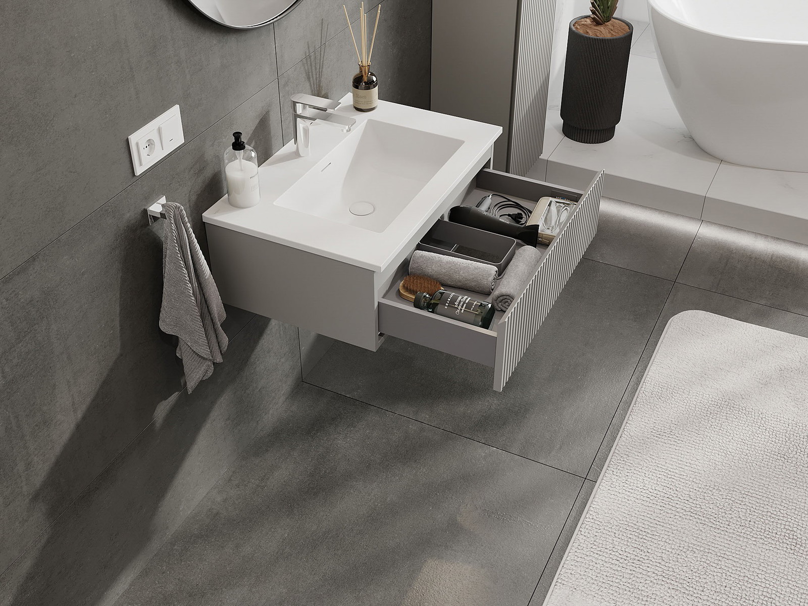Mexen Rivel kopalniška omarica 70 cm z umivalnikom Otis, 1 predal, utor, siva mat/bela mat - 91A20-07023-1-BF62-W18M01