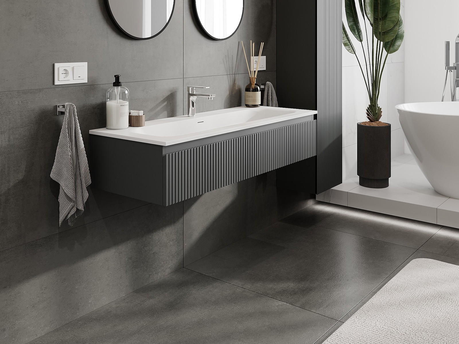 Zaradi trdnih materialov, natančne izdelave in sodobnih tehnoloških rešitev izdelek zagotavlja udobje uporabe, odpornost proti vlagi in spremembam temperature, pa tudi eleganten videz, ki se prilega različnim slogom kopalnic.