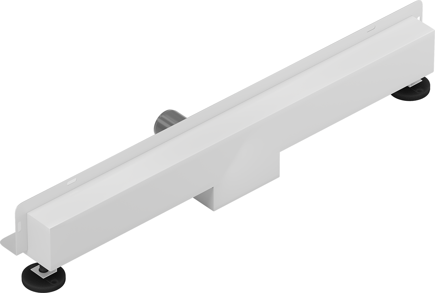 Odtočna cev je opremljena z nastavljivimi nogicami, ki omogočajo prilagoditev ustrezne višine odtoka in izravnavo na neravni površini. Na ta način je odtok še bolje prilagojen pogojem v določeni kopalnici.