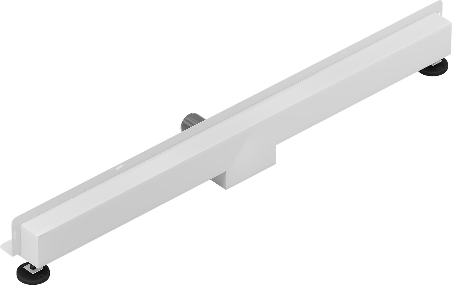 Odtočna cev je opremljena z nastavljivimi nogicami, ki omogočajo prilagoditev ustrezne višine odtoka in izravnavo na neravni površini. Na ta način je odtok še bolje prilagojen pogojem v določeni kopalnici.