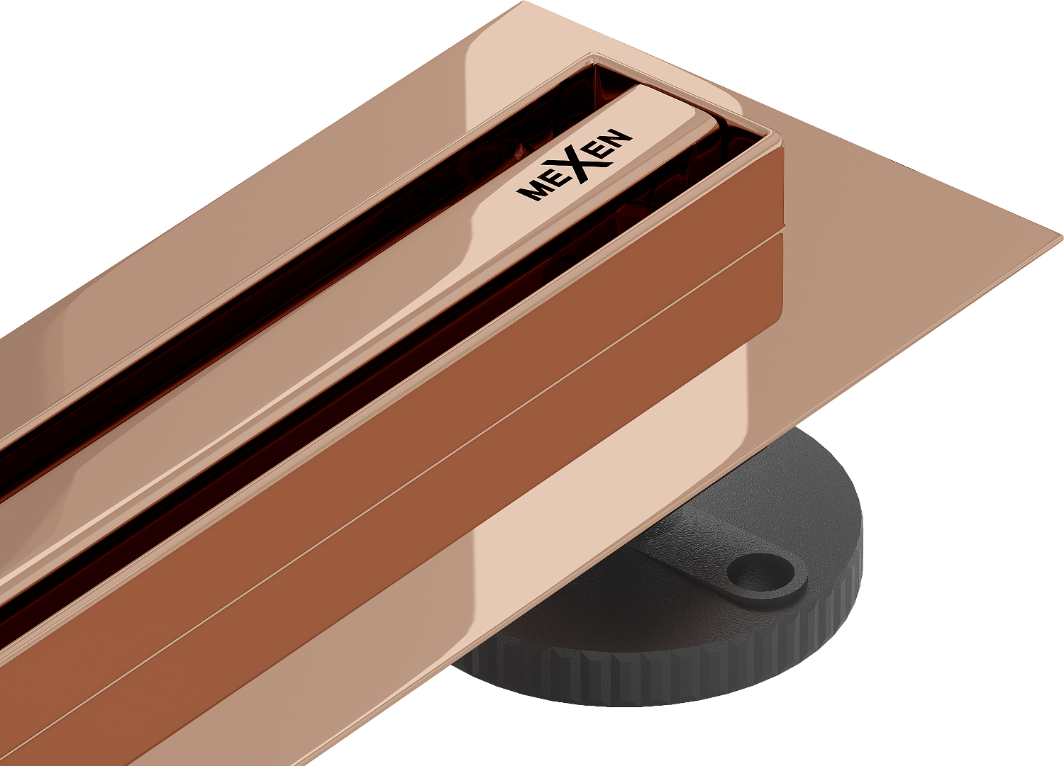 Mexen Flat 360° Slim vrtna linearna odtočna cev 140 cm, rožnato zlato - 1641140