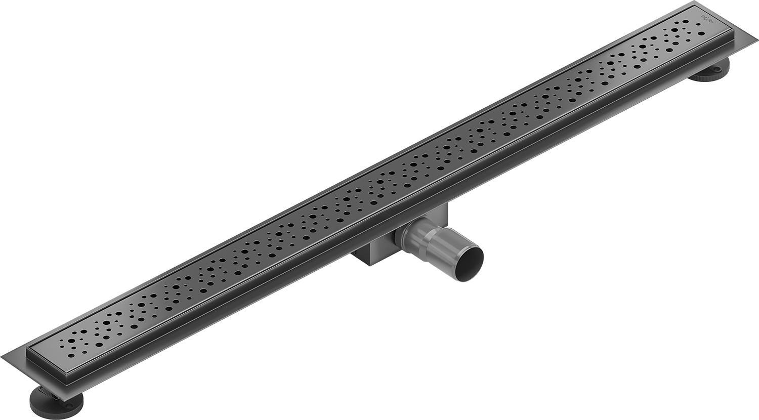 Odtočna cev je opremljena z nastavljivimi nogicami, ki omogočajo prilagoditev ustrezne višine odtoka in izravnavo na neravni površini. Na ta način je odtok še bolje prilagojen pogojem v določeni kopalnici.