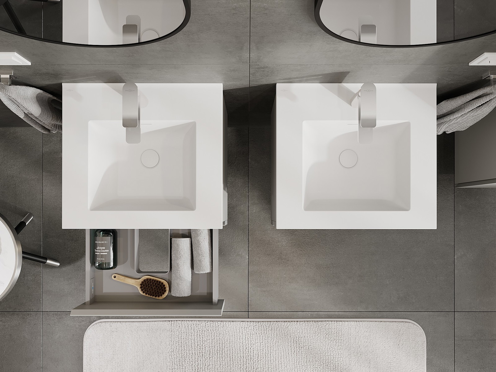 Mexen Orio kopalniška omarica 50 cm z umivalnikom Otis, 2 predala, siva mat/bela mat - 91A10-05047-2-BFF62-W18M01