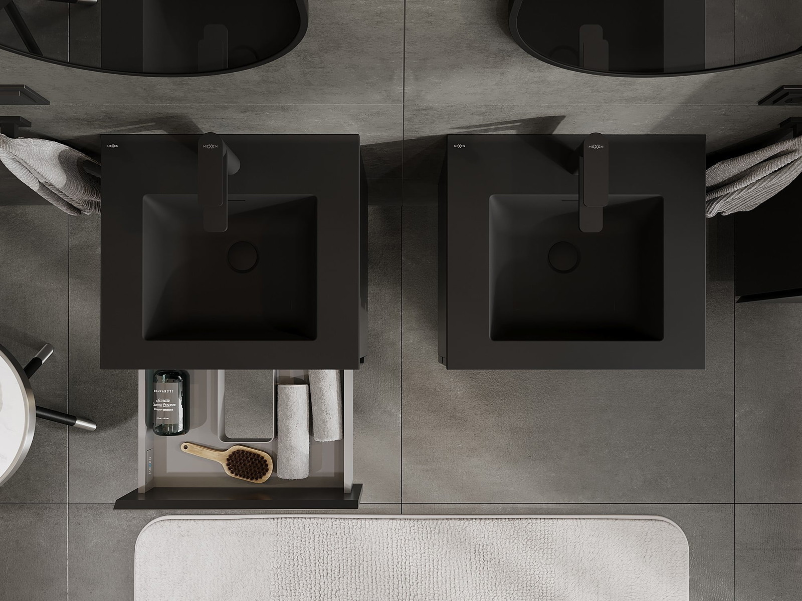 Mexen Orio kopalna omarica 50 cm z umivalnikom Otis, 2 predala, črna mat - 91A10-05047-2-BFF71-W18M71