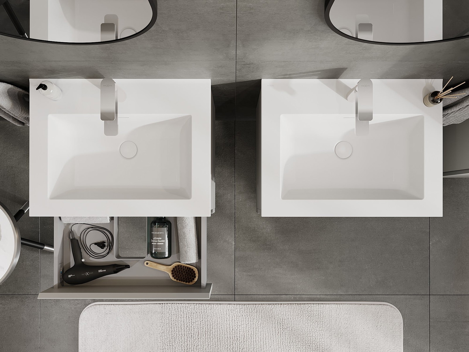Mexen Orio kopalniška omarica 60 cm z umivalnikom Otis, 2 predala, siva mat/bela mat - 91A10-06047-2-BFF62-W18M01