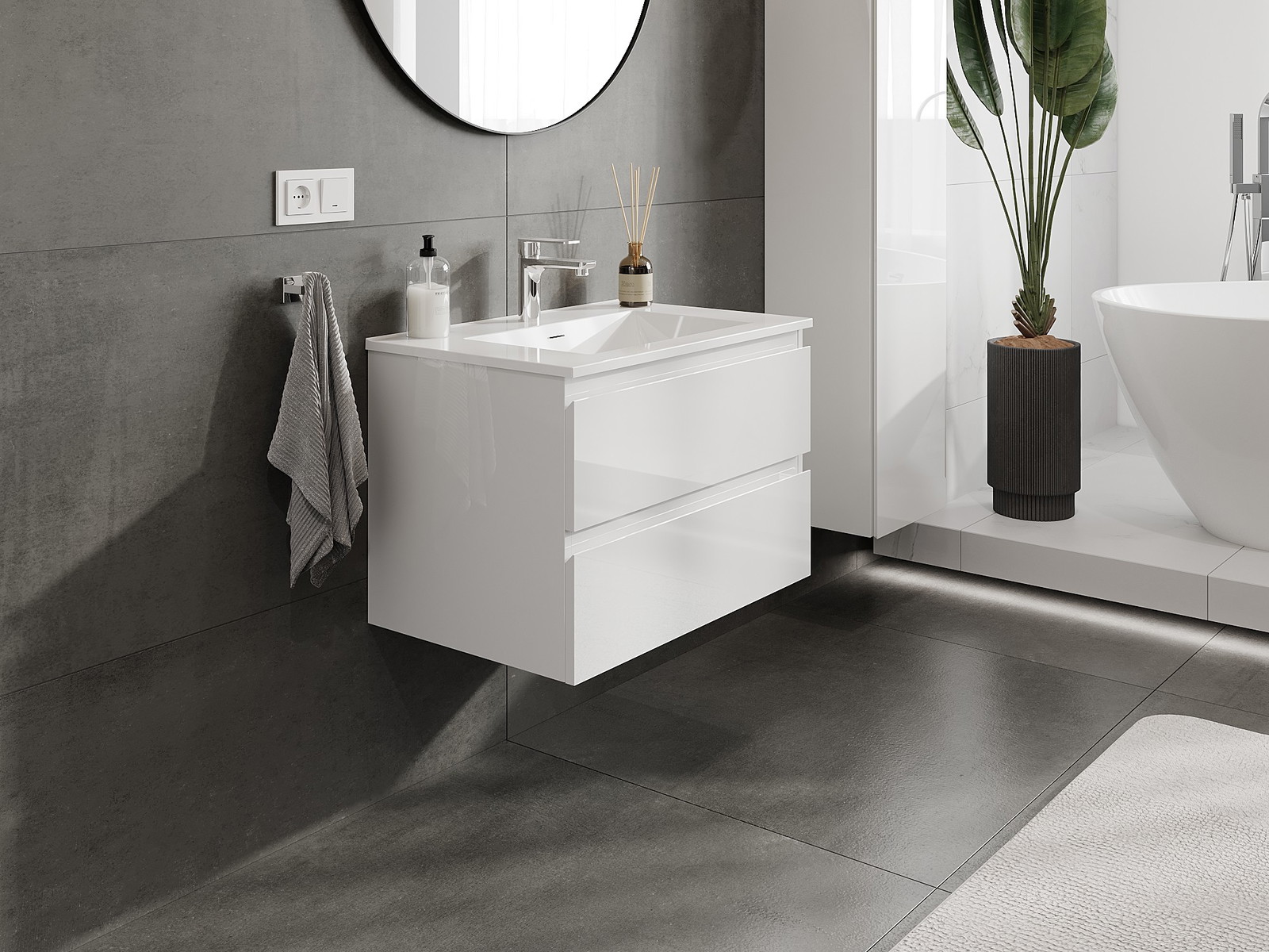 Mexen Orio kopalniška omarica 70 cm z umivalnikom Otis, 2 predala, bela sijaj - 91A10-07047-2-BFF00-W18M00