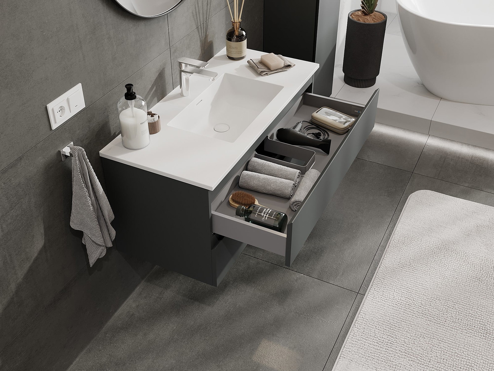 Mexen Orio kopalna omara 100 cm z umivalnikom Otis, 2 predali, grafit mat/bela mat - 91A10-10047-2-BFF66-W18M01