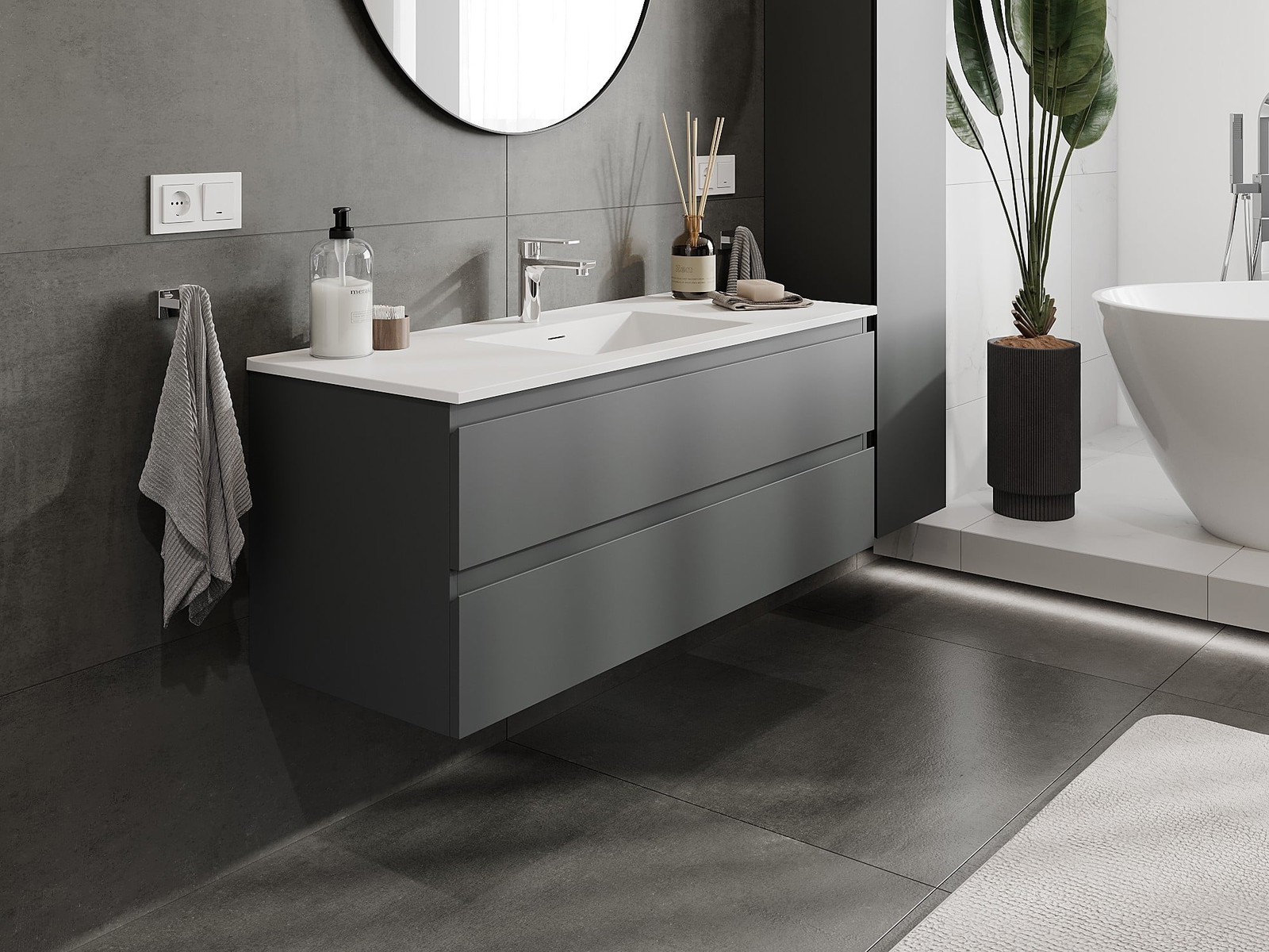 Naše modularno pohištvo za kopalnice je mogoče združevati v različnih barvnih konfiguracijah, kar omogoča popolno personalizacijo. Možno je izbrati tako videz kot funkcije posameznih elementov, kar omogoča prilagoditev pohištva vašim slogovnim in uporabniškim preferencam.