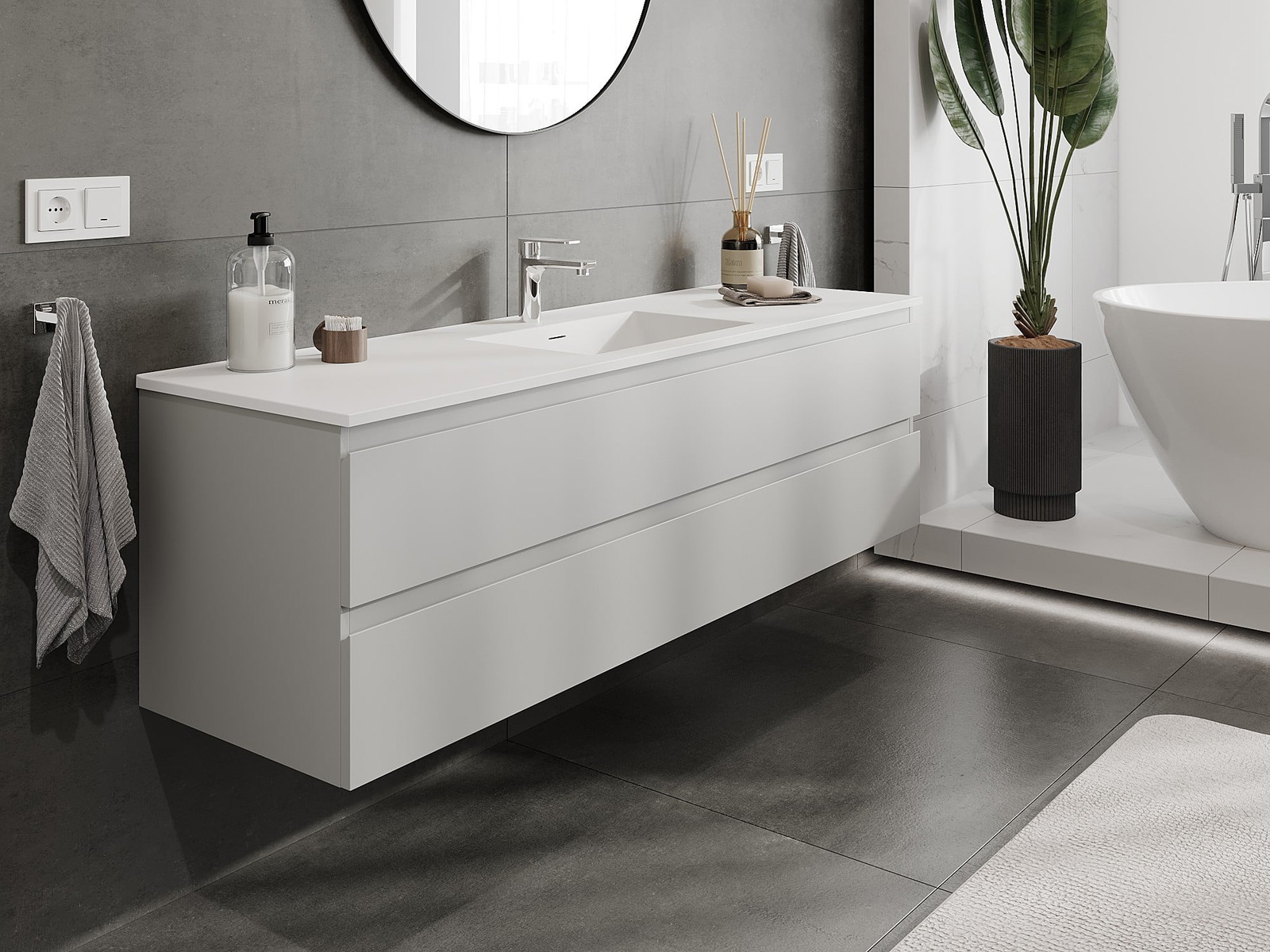 Zaradi trdnih materialov, natančne izdelave in sodobnih tehnoloških rešitev izdelek zagotavlja udobje uporabe, odpornost proti vlagi in spremembam temperature, pa tudi eleganten videz, ki se prilega različnim slogom kopalnic.