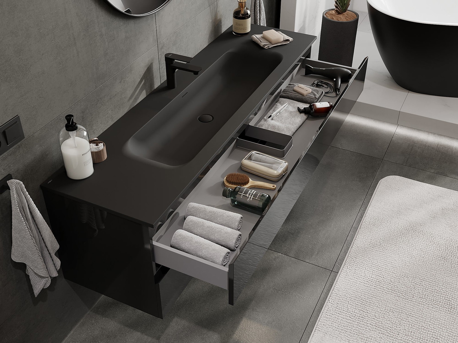 Naše modularno pohištvo za kopalnice je mogoče združevati v različnih barvnih konfiguracijah, kar omogoča popolno personalizacijo. Možno je izbrati tako videz kot funkcije posameznih elementov, kar omogoča prilagoditev pohištva vašim slogovnim in uporabniškim preferencam.