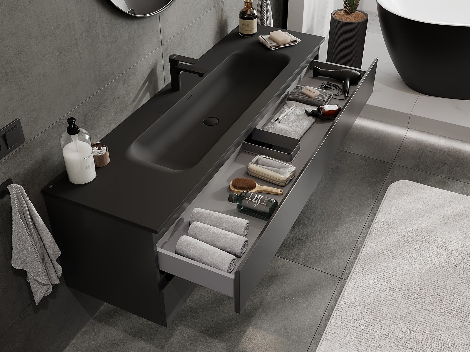 Zaradi trdnih materialov, natančne izdelave in sodobnih tehnoloških rešitev izdelek zagotavlja udobje uporabe, odpornost proti vlagi in spremembam temperature, pa tudi eleganten videz, ki se prilega različnim slogom kopalnic.