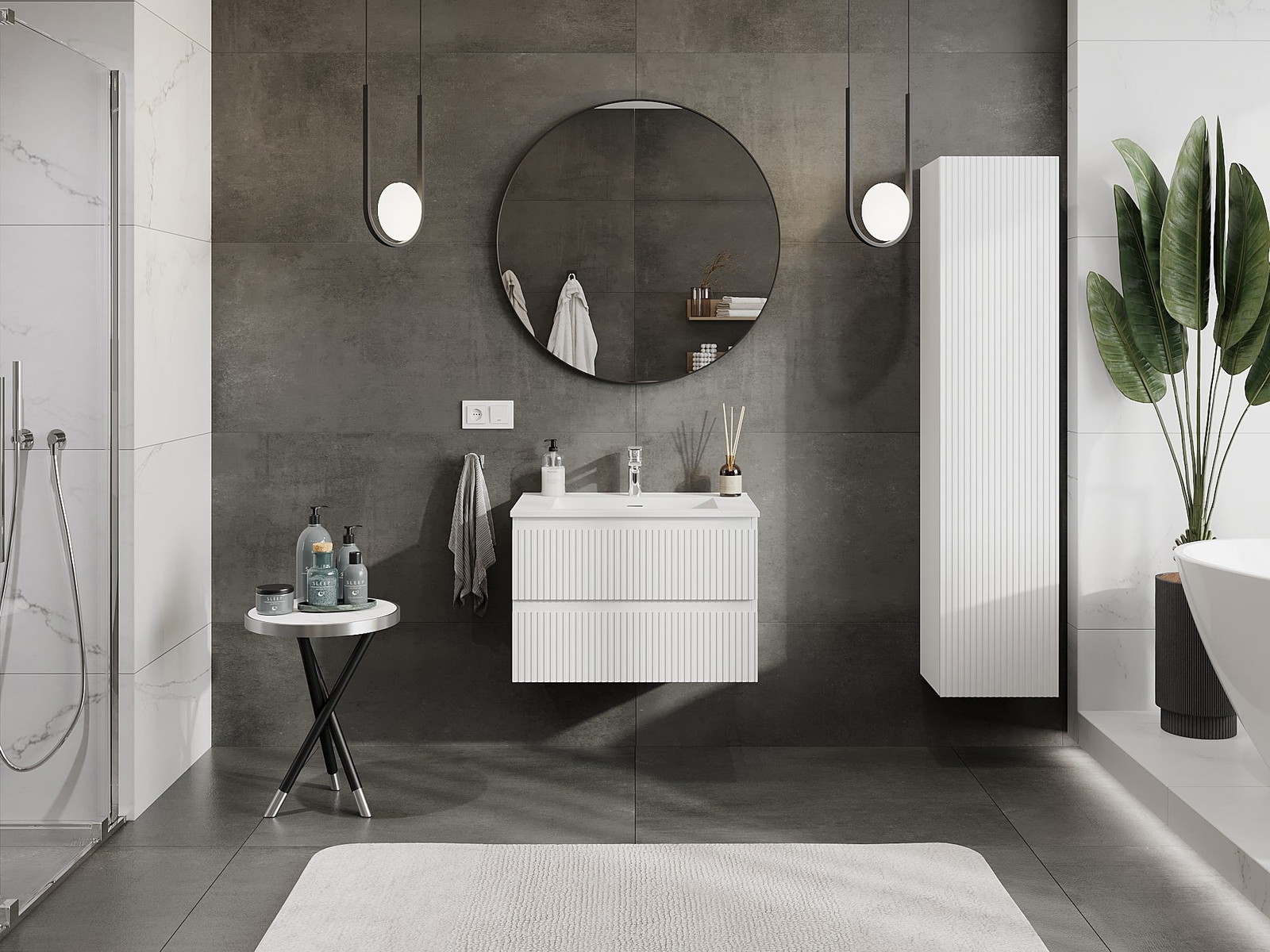 Mexen Rivel kopalniška omara 70 cm z umivalnikom Otis, 2 predala, rebrasta, bela mat - 91A20-07047-2-BFF01-W18M01