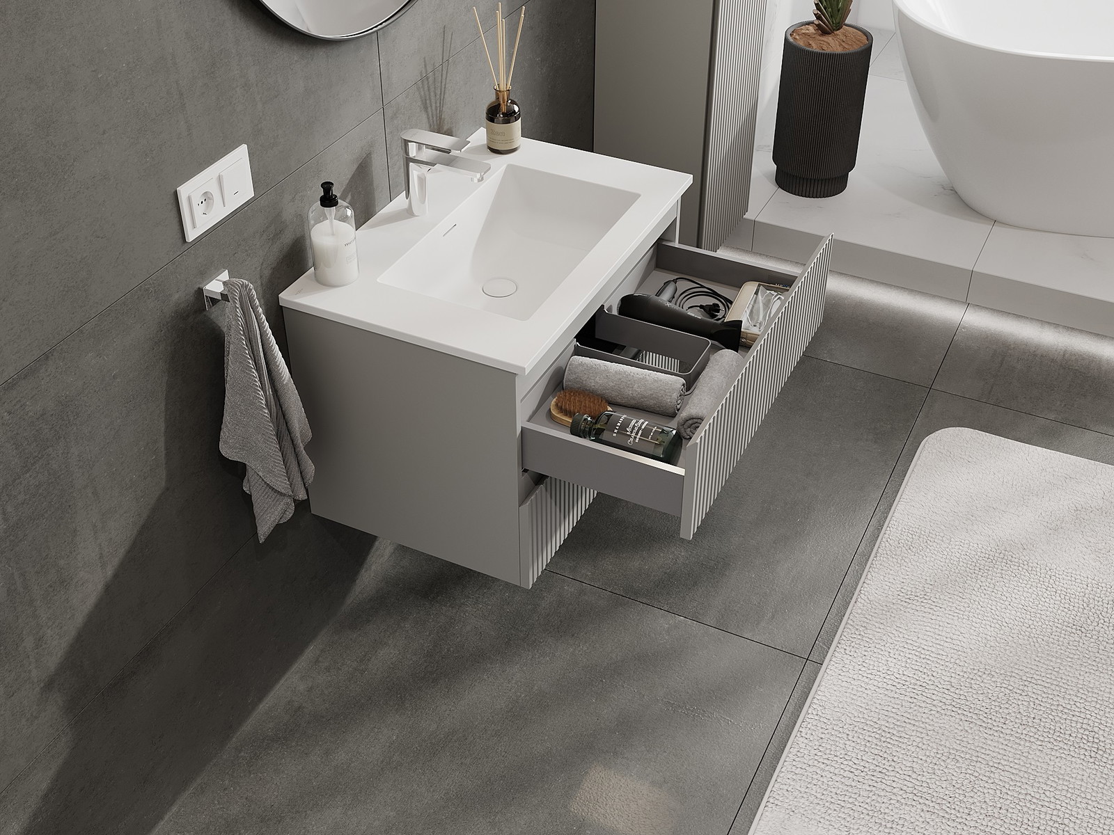 Mexen Rivel kopalniška omarica 70 cm z umivalnikom Otis, 2 predala, rebrasta, siva mat/bela mat - 91A20-07047-2-BFF62-W18M01
