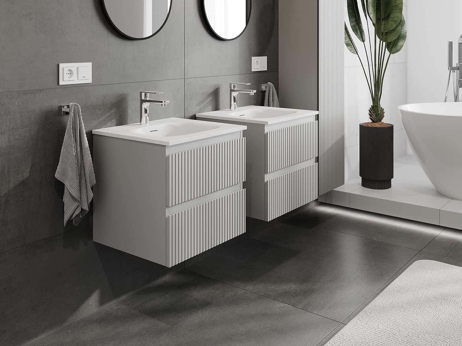 Naše modularno pohištvo za kopalnice je mogoče združevati v različnih barvnih konfiguracijah, kar omogoča popolno personalizacijo. Možno je izbrati tako videz kot funkcije posameznih elementov, kar omogoča prilagoditev pohištva vašim slogovnim in uporabniškim preferencam.
