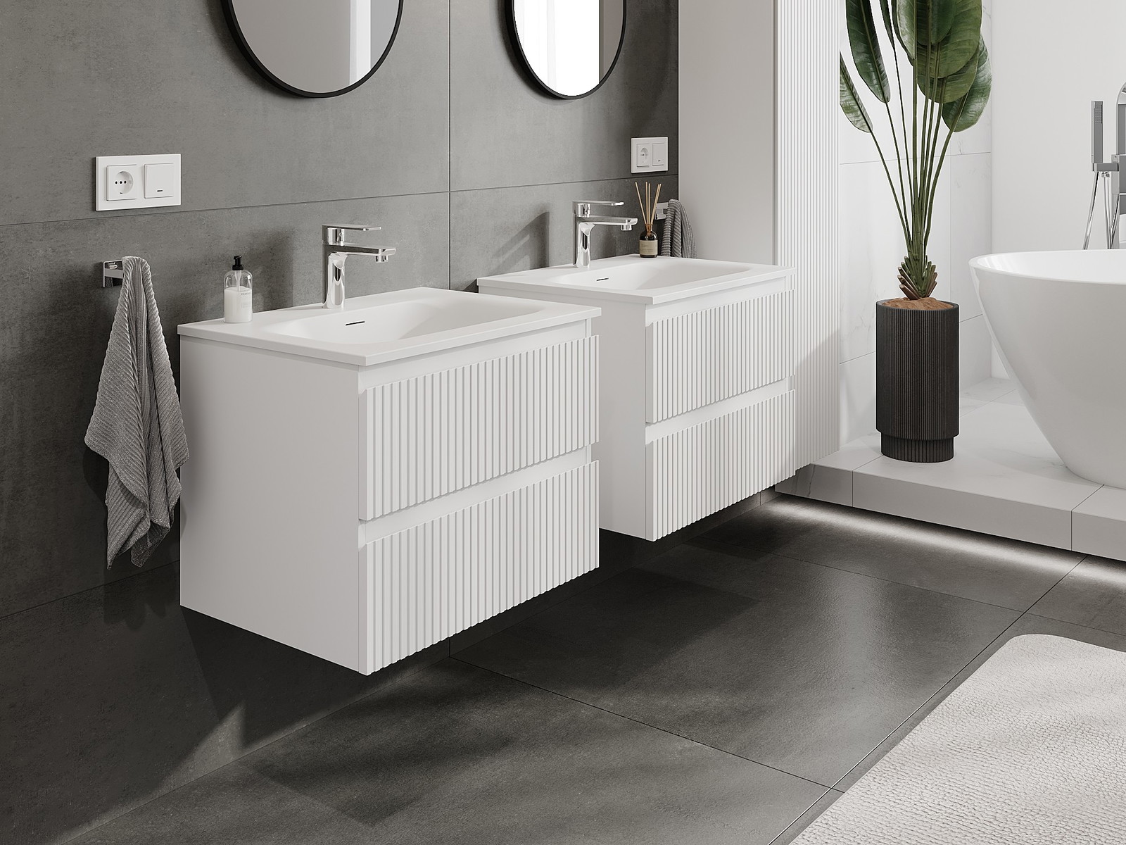 Naše modularno pohištvo za kopalnice je mogoče združevati v različnih barvnih konfiguracijah, kar omogoča popolno personalizacijo. Možno je izbrati tako videz kot funkcije posameznih elementov, kar omogoča prilagoditev pohištva vašim slogovnim in uporabniškim preferencam.