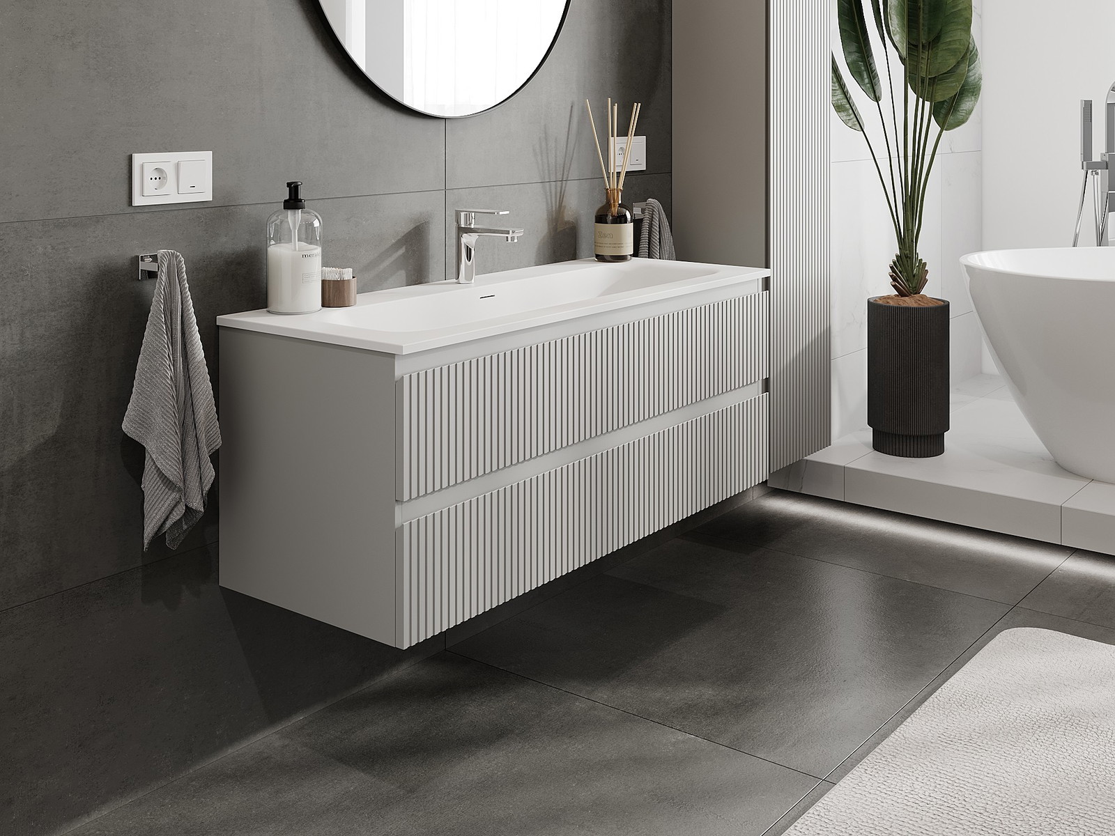Naše modularno pohištvo za kopalnice je mogoče združevati v različnih barvnih konfiguracijah, kar omogoča popolno personalizacijo. Možno je izbrati tako videz kot funkcije posameznih elementov, kar omogoča prilagoditev pohištva vašim slogovnim in uporabniškim preferencam.