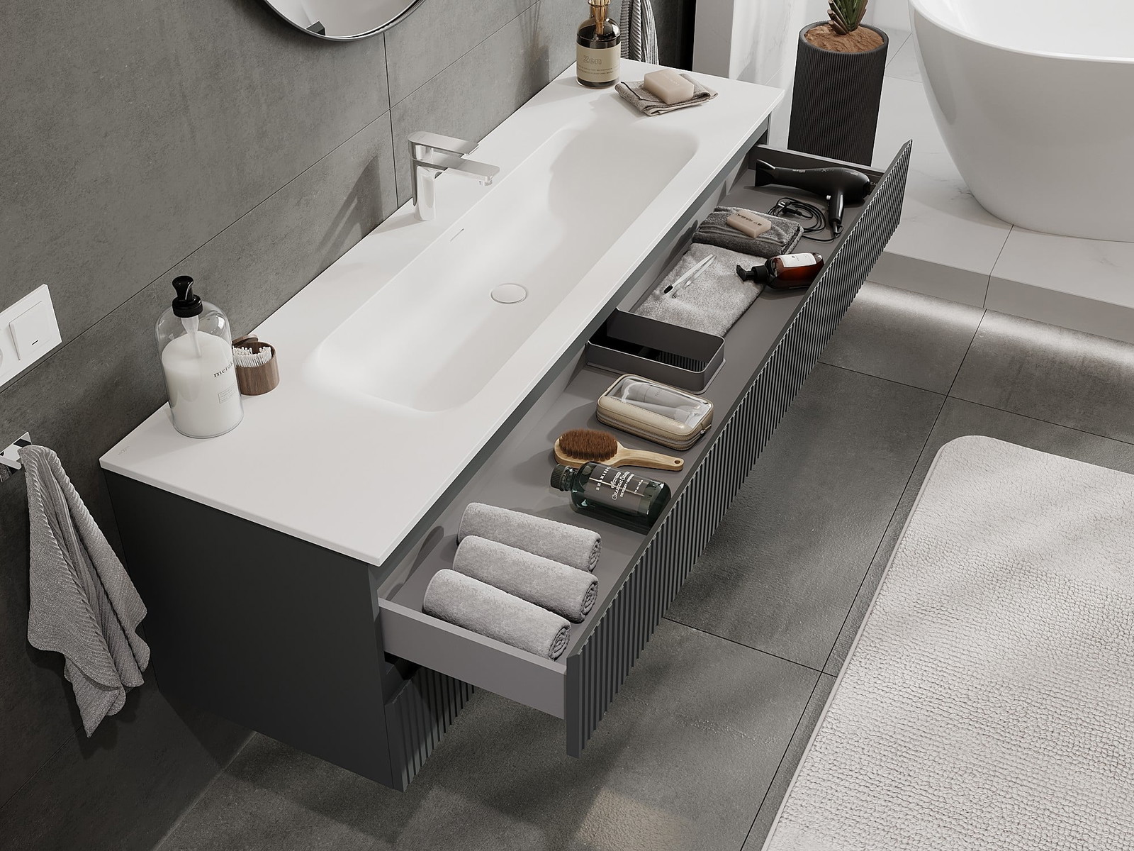 Zaradi trdnih materialov, natančne izdelave in sodobnih tehnoloških rešitev izdelek zagotavlja udobje uporabe, odpornost proti vlagi in spremembam temperature, pa tudi eleganten videz, ki se prilega različnim slogom kopalnic.
