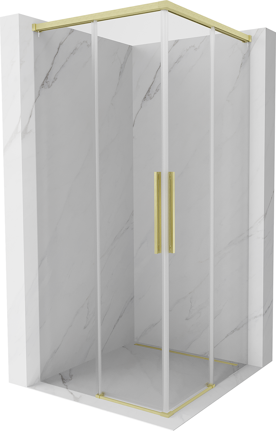 Mexen Rox Duo kabina za prhanje z drsnimi vrati 80 x 80 cm, prozorna, zlata brušena - 8C2D-080-080-55-00