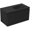 Izrez v predalu je zasnovan tako, da sprejme sifon, ki je nujen v umivalniških instalacijah. S tem je mogoče pohištvo popolnoma funkcionalno namestiti, ne da bi se morali odpovedati prostoru v predalu zaradi instalacije.