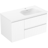 Izrez v predalu je zasnovan tako, da sprejme sifon, ki je nujen v umivalniških instalacijah. S tem je mogoče pohištvo popolnoma funkcionalno namestiti, ne da bi se morali odpovedati prostoru v predalu zaradi instalacije.
