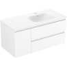 Izrez v predalu je zasnovan tako, da sprejme sifon, ki je nujen v umivalniških instalacijah. S tem je mogoče pohištvo popolnoma funkcionalno namestiti, ne da bi se morali odpovedati prostoru v predalu zaradi instalacije.