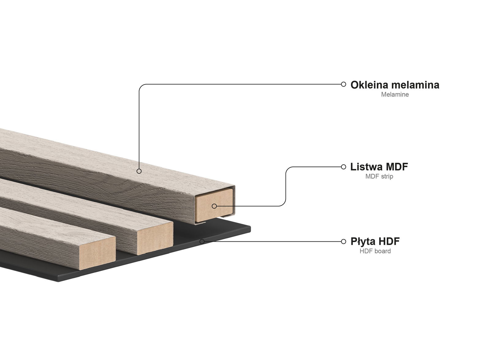 Material lamel: MDF letvica + melamin furnir