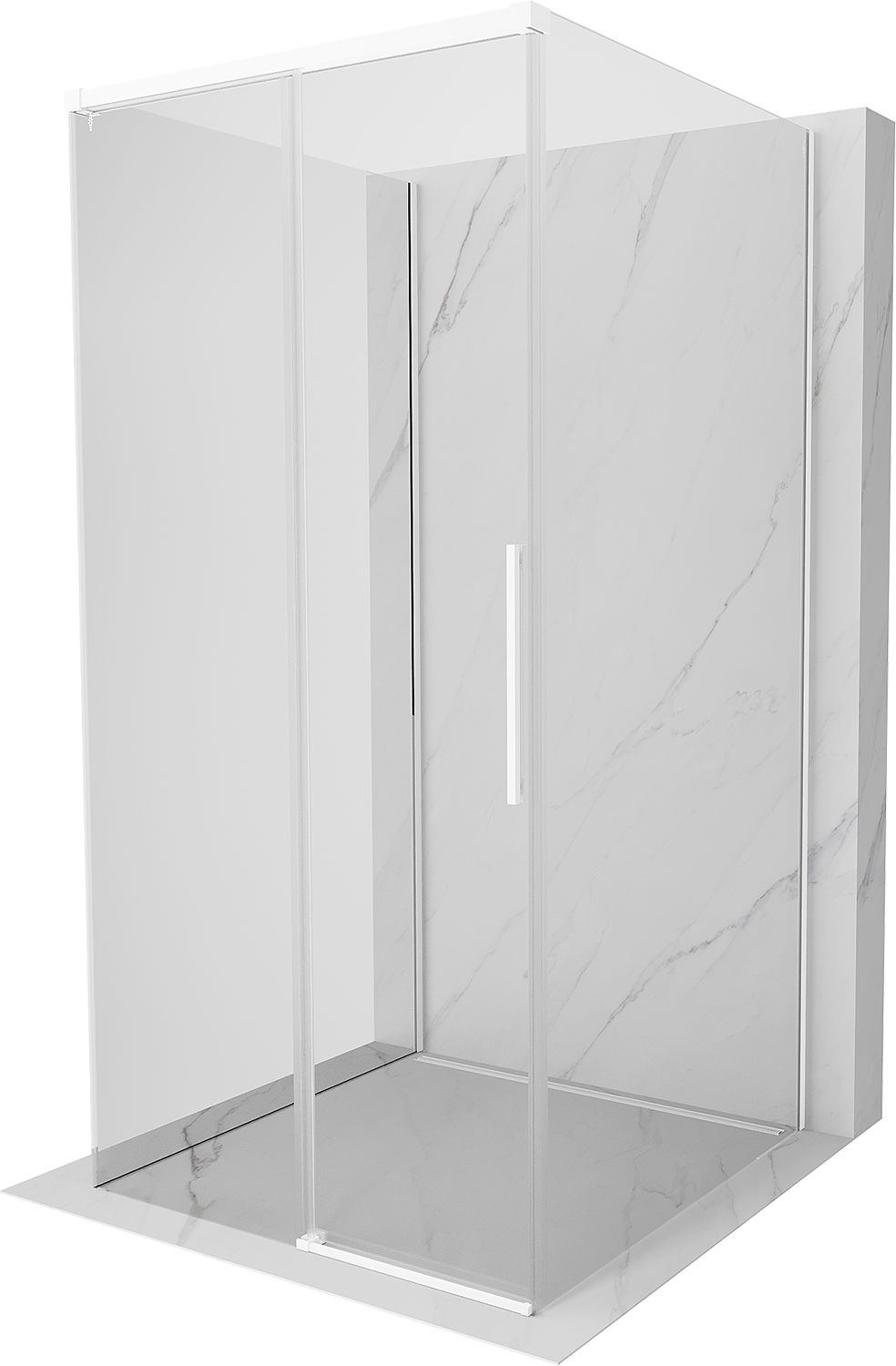 Mexen Rox-3S tuš kabina 3-stranska drsna 90 x 90 cm, prozorna, bela - 8C2-090-090-20-00-3S
