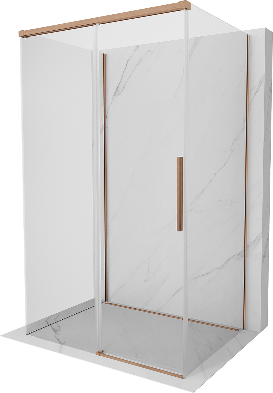 Mexen Rox-3S 3-stransko drsno pršnično kabino 125 x 85 cm, prozorna, brušena baker - 8C2-125-085-65-00-3S