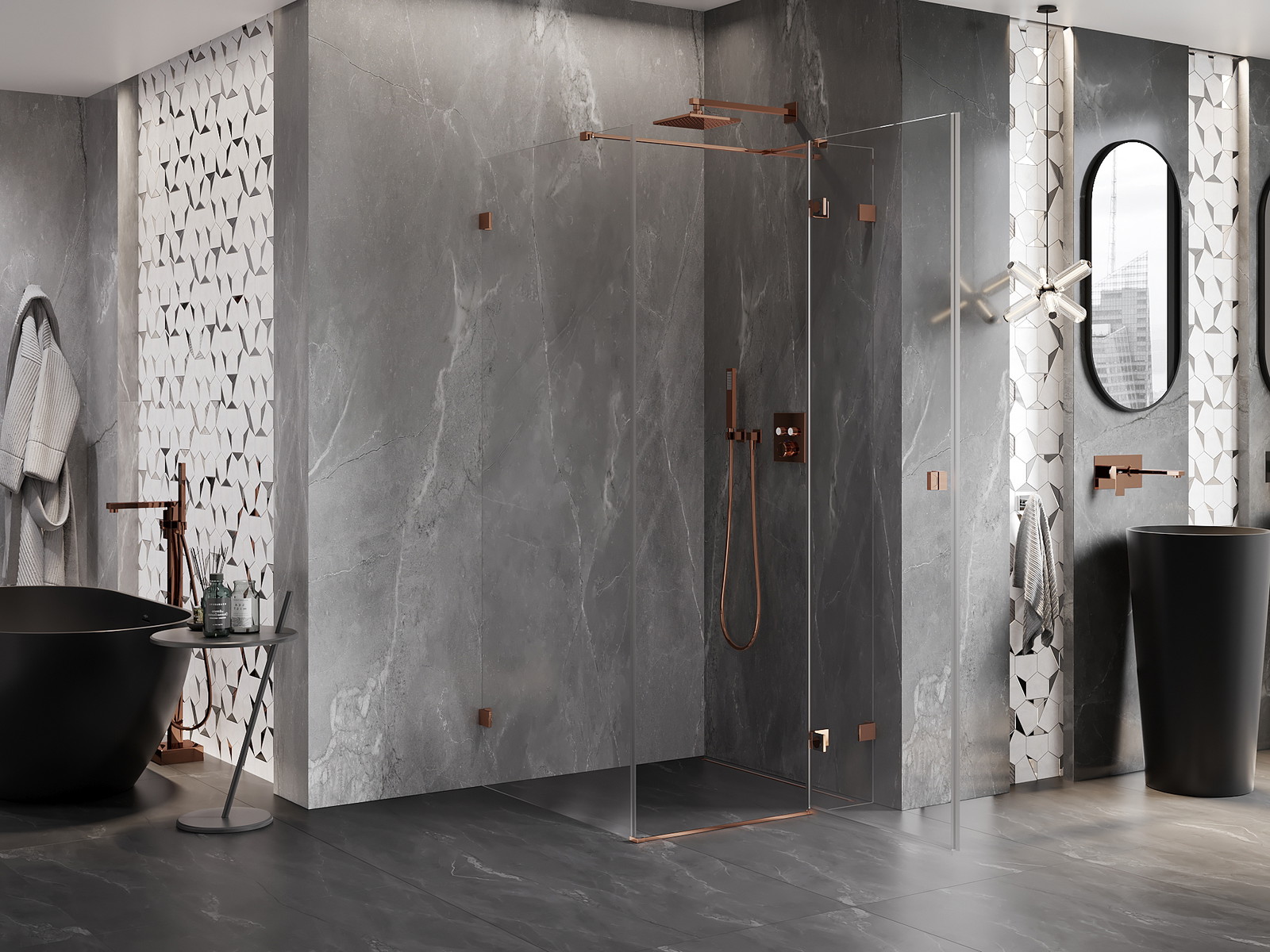 Sponke in tečaji so izdelani iz zelo trpežne medenine in dodatno ustvarjajo poravnano površino stekla. To je odlična izbira, ki združuje eleganco, vzdržljivost in sodoben dizajn. Zaradi takšnih rešitev prha pridobi na estetiki, hkrati pa olajšajo vzdrževanje čistoče.