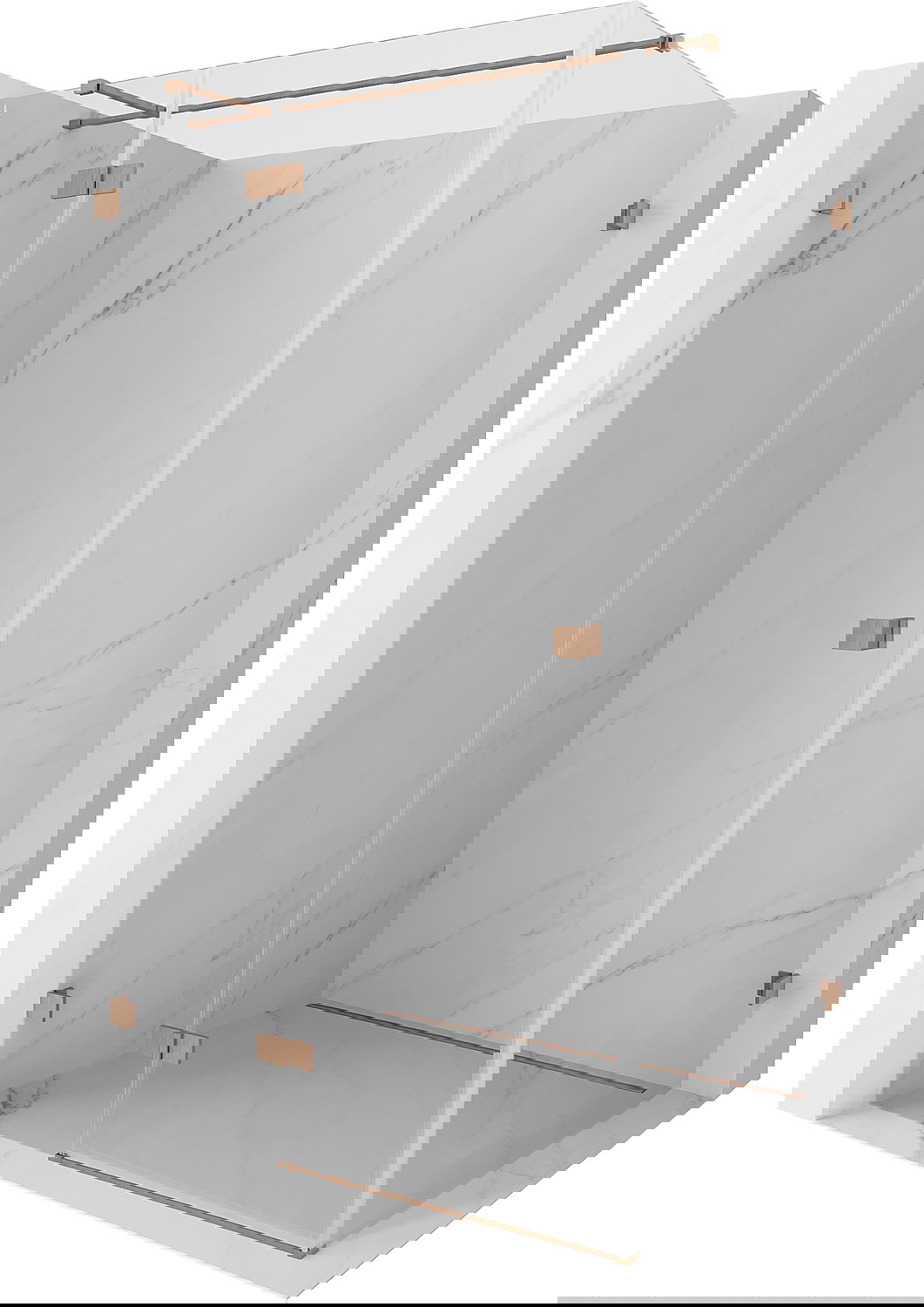 Sponke in tečaji so izdelani iz zelo trpežne medenine in dodatno ustvarjajo poravnano površino stekla. To je odlična izbira, ki združuje eleganco, vzdržljivost in sodoben dizajn. Zaradi takšnih rešitev prha pridobi na estetiki, hkrati pa olajšajo vzdrževanje čistoče.
