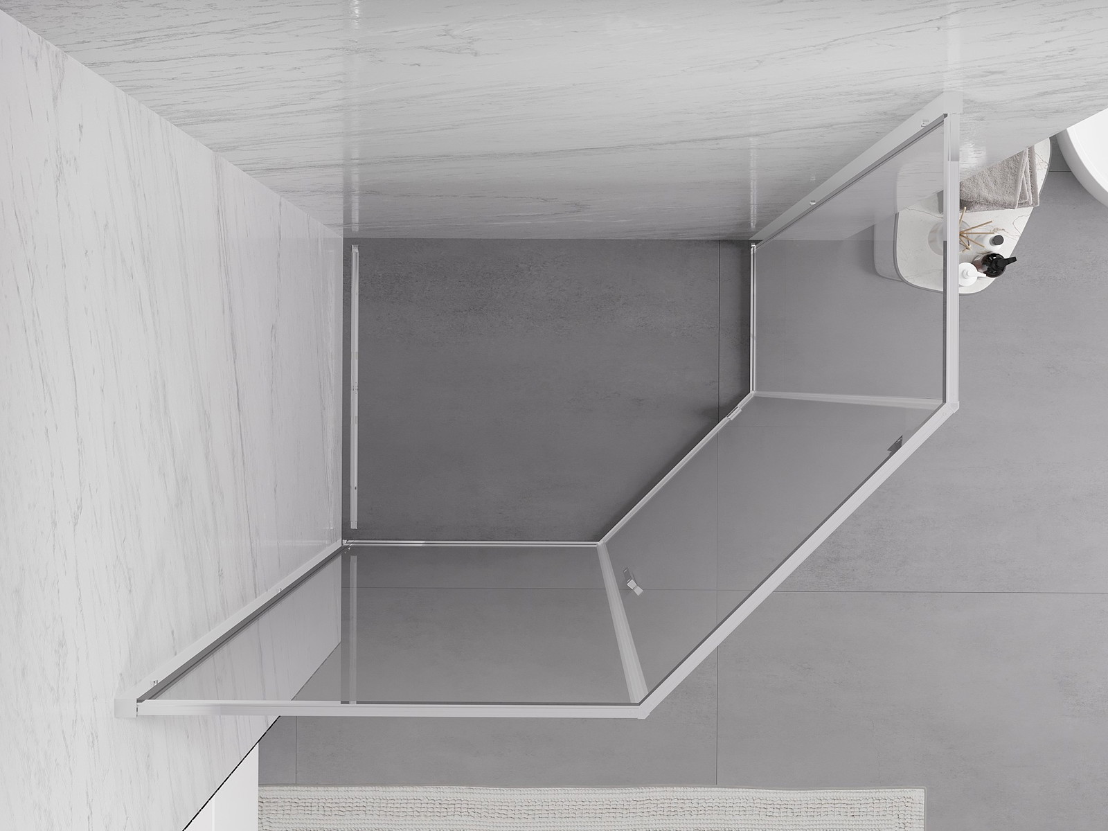 Priročen in udoben ročaj je izdelan iz trpežnega in odpornega kovine. Modna oblika v kombinaciji z zaključkom, ki ustreza barvi profilov, daje celoti sodoben in stilski videz, poudarjajoč estetiko vsake kopalnice.
