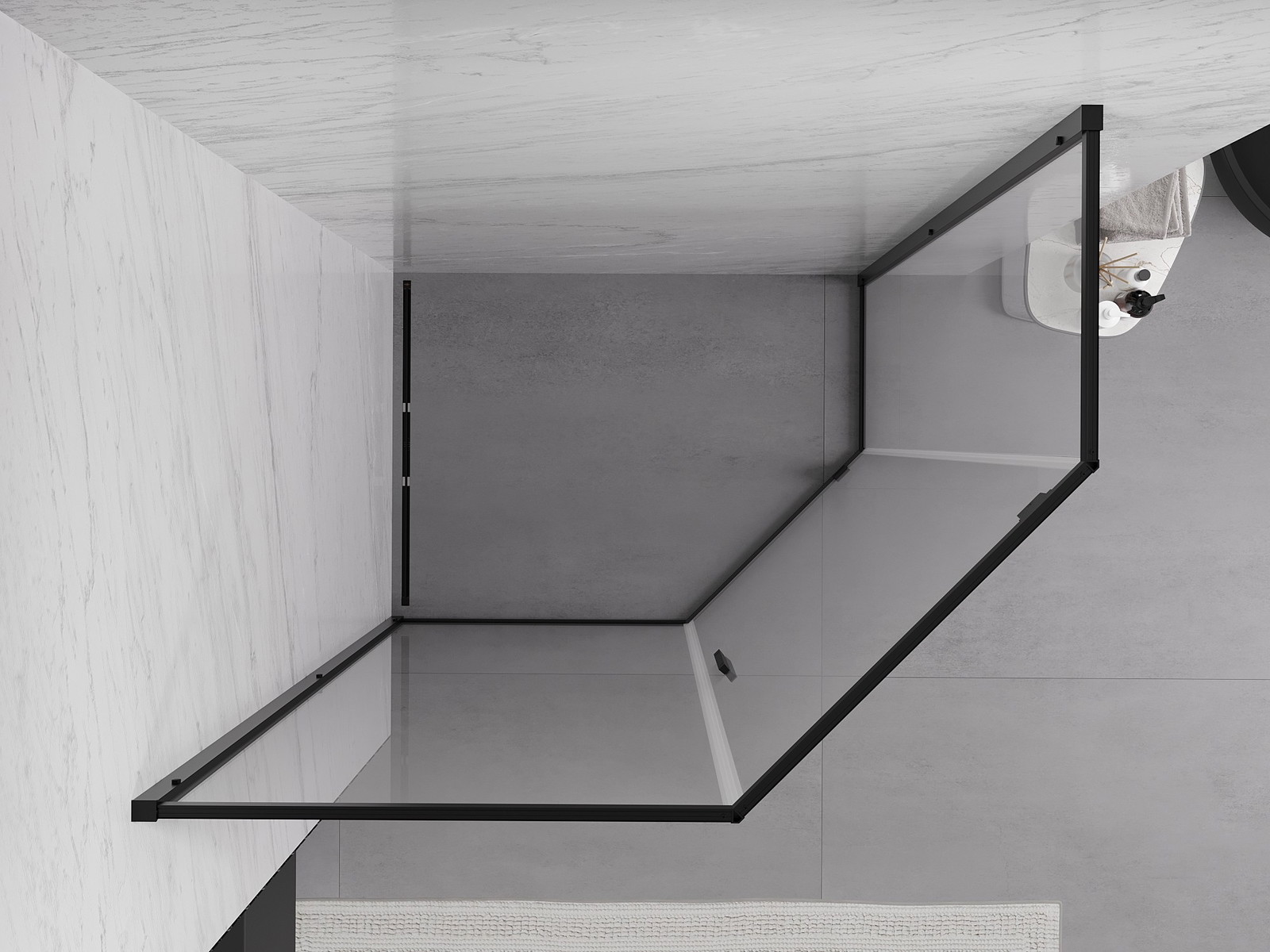 Priročen in udoben ročaj je izdelan iz trpežnega in odpornega kovine. Modna oblika v kombinaciji z zaključkom, ki ustreza barvi profilov, daje celoti sodoben in stilski videz, poudarjajoč estetiko vsake kopalnice.