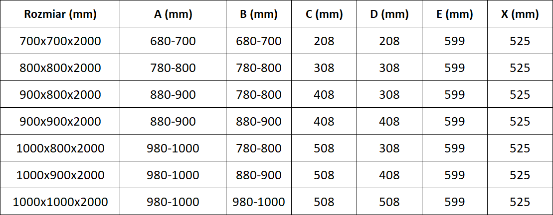 Tuš kabine, vrata in stene so standardno prilagojene za montažo na tuš kadi določenih dimenzij. Te dimenzije so navedene v imenu ali opisu izdelka. Vendar je treba upoštevati, da se dejanske mere elementov lahko nekoliko razlikujejo od nazivnih vrednosti. V primeru načrtovane montaže neposredno na tla je priporočljivo natančno preveriti zunanje mere in razporeditev elementov v skladu s tehnično risbo.