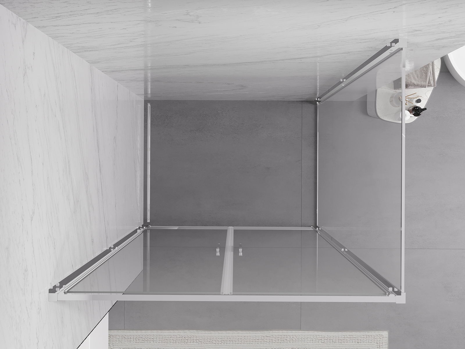 Priročen in udoben ročaj je izdelan iz trpežnega in odpornega kovine. Modna oblika v kombinaciji z zaključkom, ki ustreza barvi profilov, daje celoti sodoben in stilski videz, poudarjajoč estetiko vsake kopalnice.