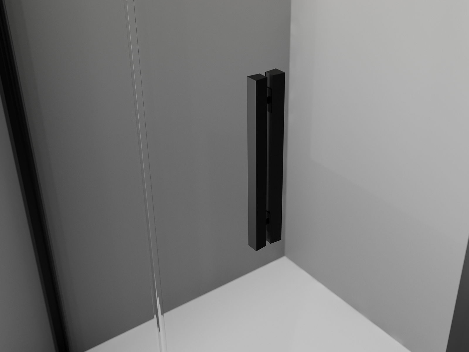 Priročen in udoben ročaj je izdelan iz trpežnega in odpornega kovine. Modna oblika v kombinaciji z zaključkom, ki ustreza barvi profilov, daje celoti sodoben in stilski videz, poudarjajoč estetiko vsake kopalnice.